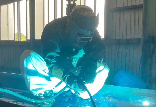 組立て溶接を施した箇所すべてに本溶接を行い、製品に必要な強度を持たせる。溶接基準に従い溶接対象の板厚ごと継手種類ごとに溶接ビードの断面形状のサイズに注意し、入熱量・パス間温度を管理値内に収める必要がある。